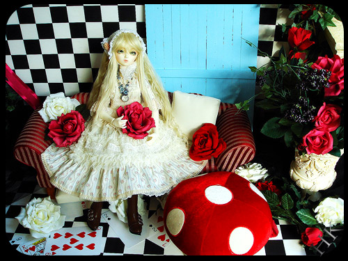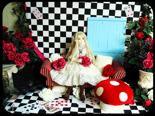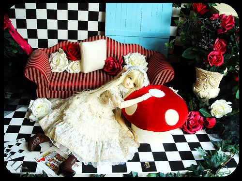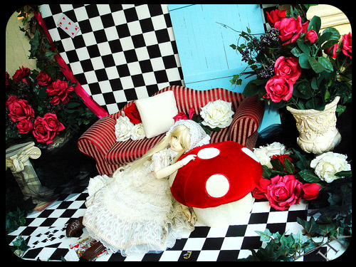 1Fのロビーの撮影スペースはアリスっぽい可愛い背景でした♪