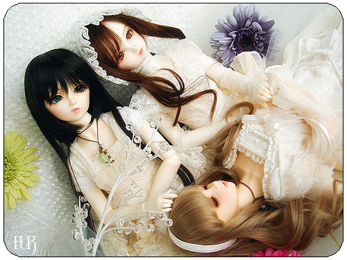 澪のデフォ服に合わせて白い服で統一して三人一緒に撮ってみました。