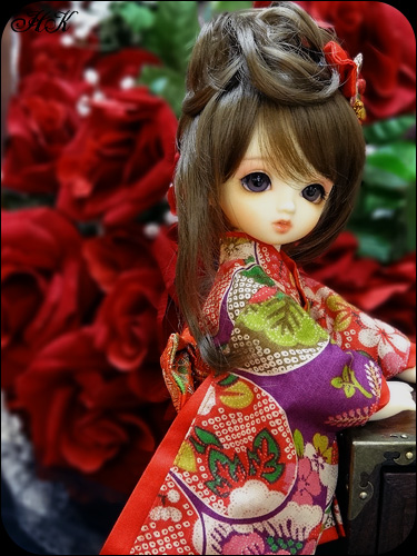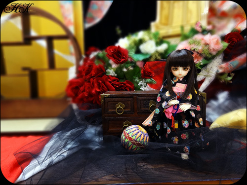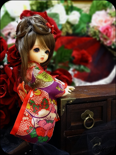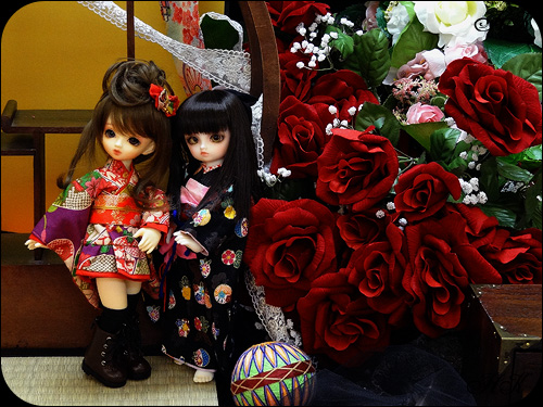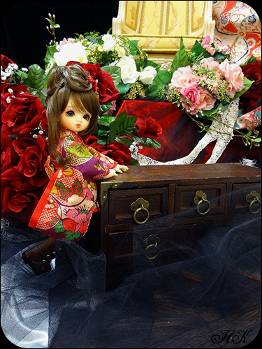 和風な背景ですが赤い薔薇がいい感じに似合ってます♪