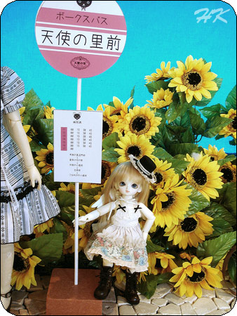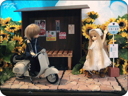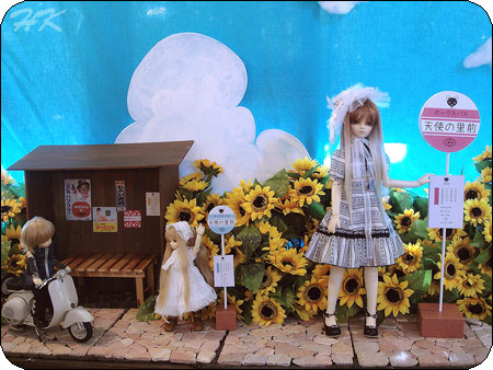 工房にて。夏の田舎のバス停?素朴な感じのブースでした(笑)
