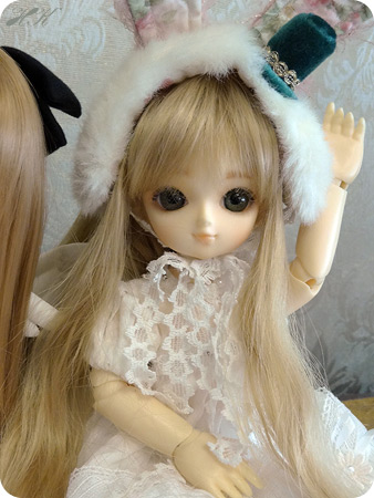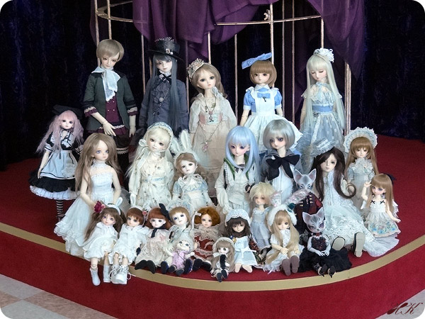 苦労した集合写真。まほが倒れて連鎖してその後ろの友人のドールが傾き、